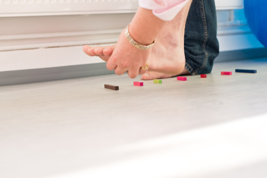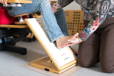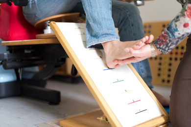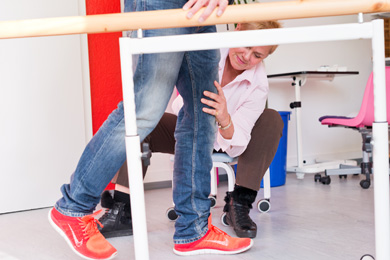 Nach der Widerherstellung der Somästhetik, Kinästhetik (Erkennung der Stellung) der einzelnen Gelenke und der Taktilität (Erkennung der unterschiedlichen Oberflächen, die in diesem Fall mit dem Bein bzw. Fuß in Kontakt kommen), werden alle Phasen des Schrittes und dessen Bezug auf die Körperhaltung geübt.