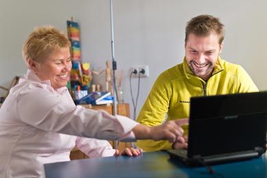 Auch die Therapiematerialien wählen wir gemeinsam aus. Je nach dem, ob Sie gerne am PC arbeiten oder lieber klassisch mit Gegenständen, die man anfassen kann – alles ist möglich.